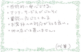皆様の喜びの声をもとに、さらにお客様に喜んで頂けるようお仕事をさせていただいております。